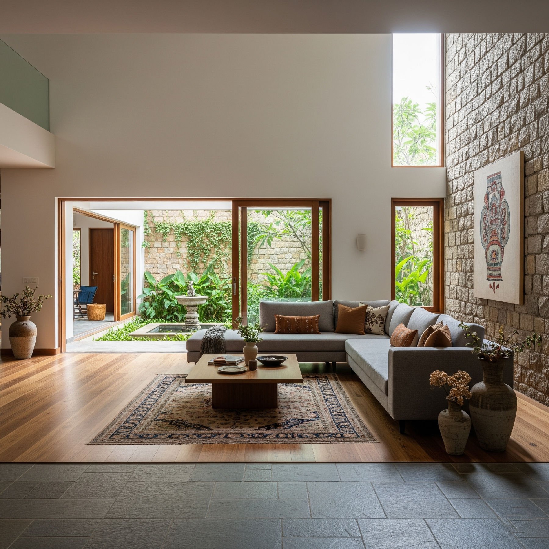 anandvan Interiors completed the 'Saraswati Niwas' project in 2023, transforming a classic Mumbai residence into a contemporary home that honors its heritage. The design seamlessly integrates intricate Indian craftsmanship, such as handcrafted jali screens and teakwood carvings, with sleek, modern elements to create a space that is both elegant and highly functional. The project's core philosophy centers on a deep appreciation for regional artistry and a commitment to sustainable, locally sourced materials. The result is a luxurious yet grounded living environment that provides a serene sanctuary from the urban bustle.